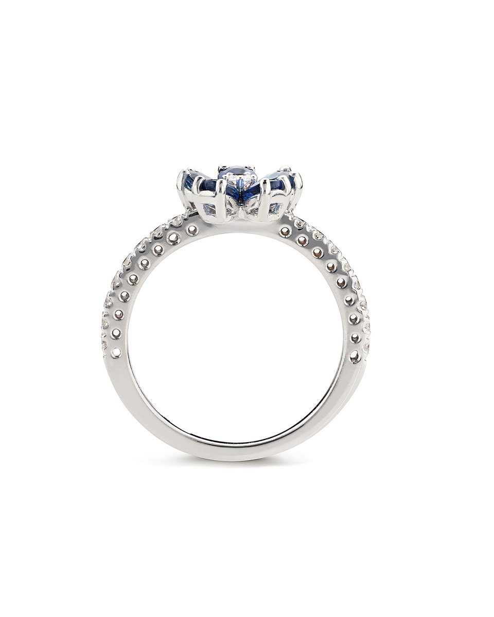 RING "Cherry Blossom", WHITE GOLD, BLUE SAPPHIRE AND DIAMONDS