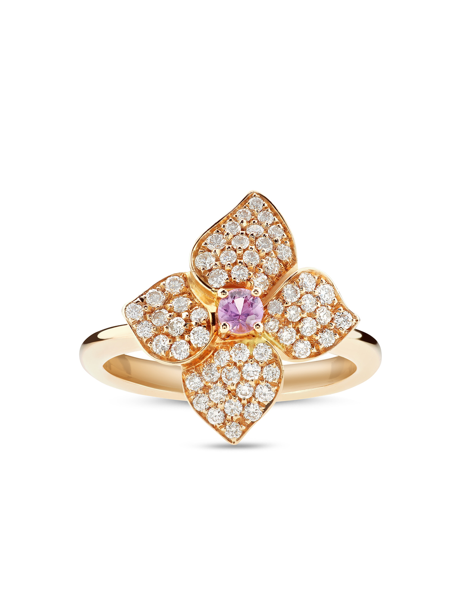 ORTENSIA RING, ROSE GOLD, DIAMONDS AND PINK SAPPHIRE