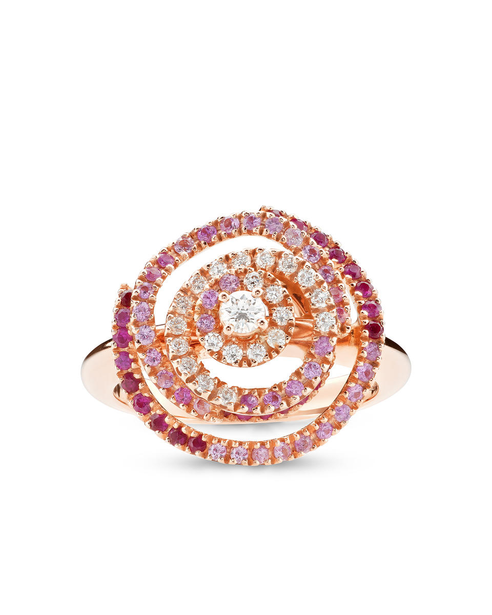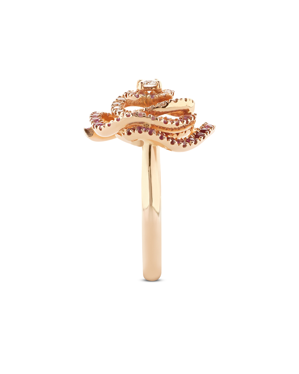 PEONY RING, ROSE GOLD, DIAMONDS, PINK SAPPHIRE AND RUBIES