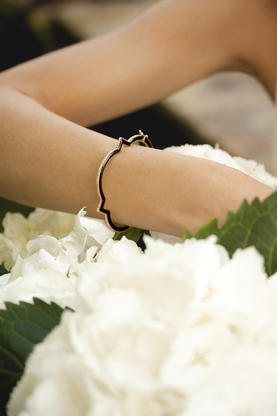 ANIME BANGLE, ROSE GOLD, BLACK ENAMEL AND DIAMONDS