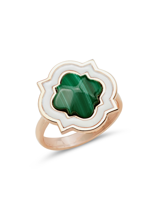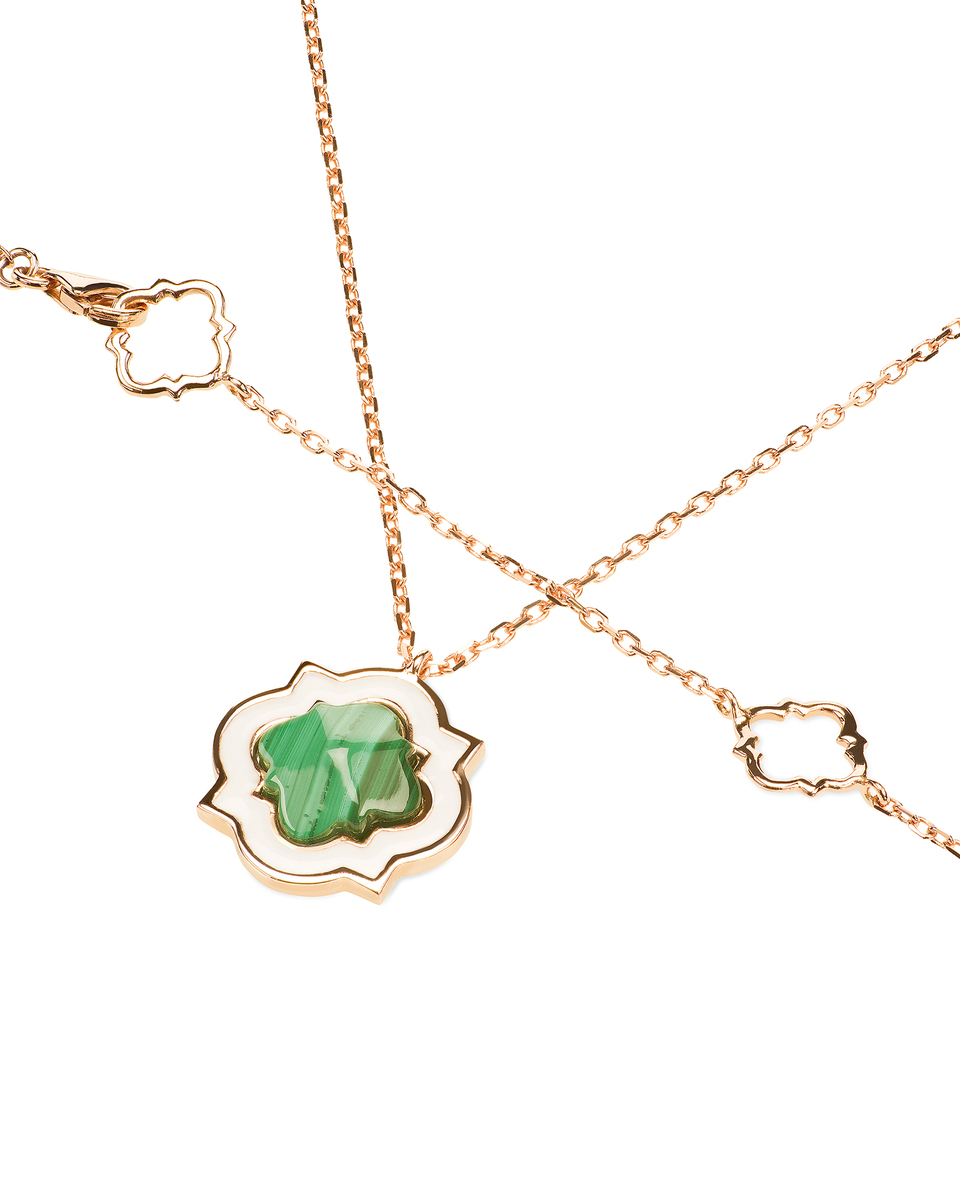 ANIME NECKLACE, ROSE GOLD, WHITE ENAMEL AND MALACHITE