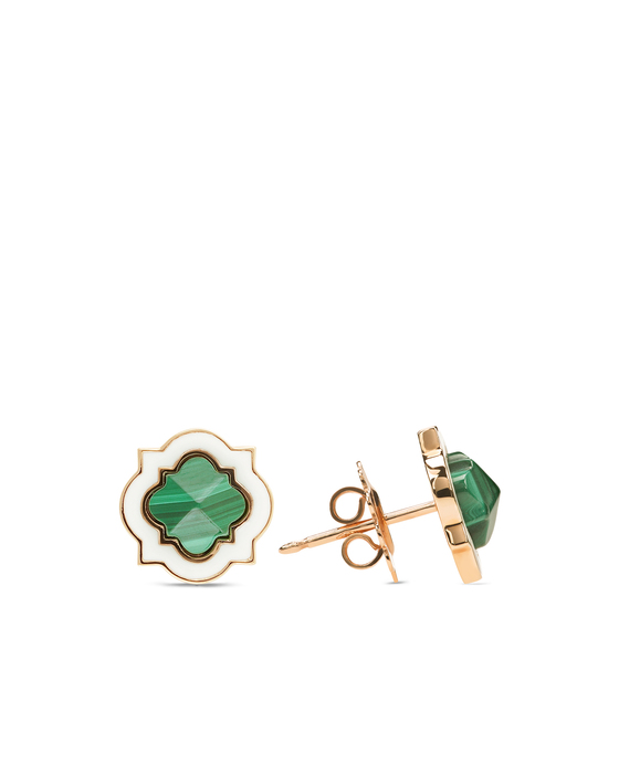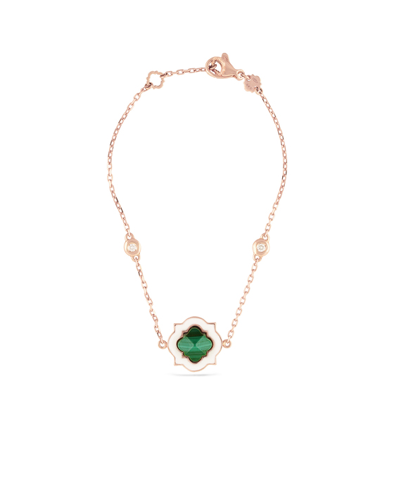 Realized in rose gold 18 carat with a pendant in white enamel and malachite which is a tribute to the iconic symbol of the Maison. The precious chain consists of an adjustable clasp which adapts perfectly to every woman.