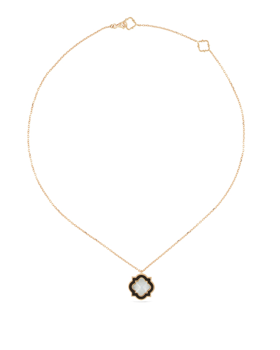 ANIME NECKLACE, ROSE GOLD, BLACK ENAMEL AND MOTHER OF PEARL