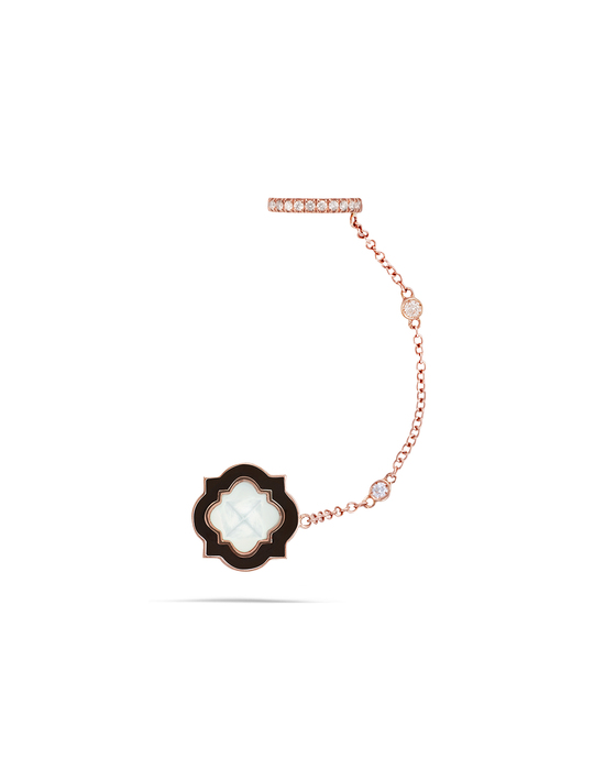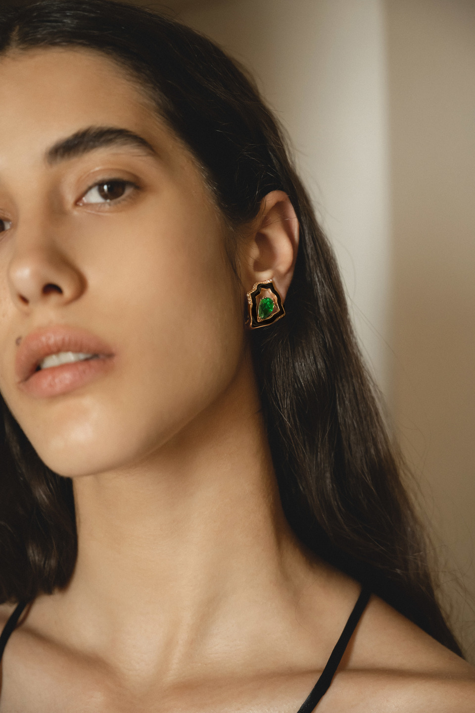 The Anime earrings in Rock version are made in rose gold, black enamel, diamonds and embellished with emerald that contrasts the light effects of enamel and gold. The versatile jewel adds an elegant and bright detail to any outfit.