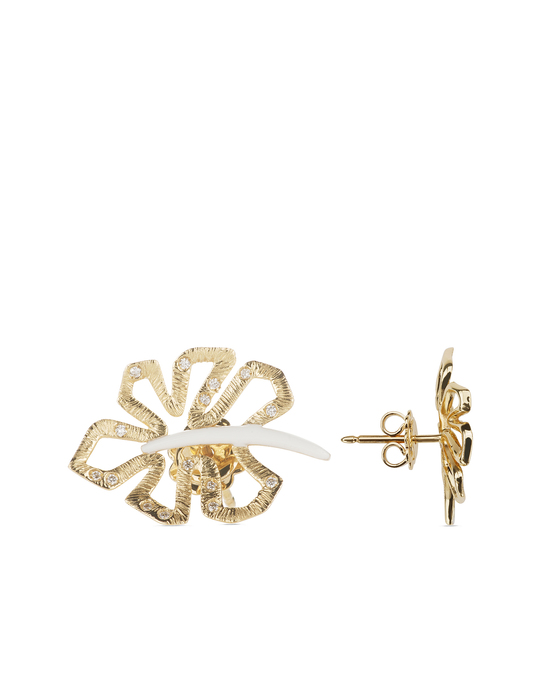 In this mini version, the white ename on the steml gives refinement to these earrings, which are meant to be worn everyday. Diamonds on the surface provide lights and elegance to the jewel.