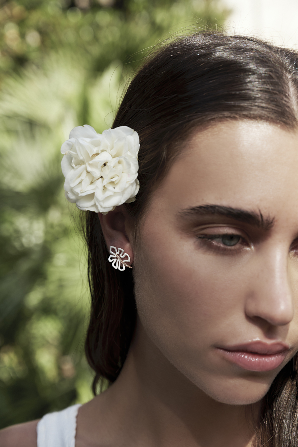 In this mini version, the white enamel gives refinement to these earrings, which are meant to be worn everyday. The trail of diamonds on the stems provides lights and elegance to the jewel.