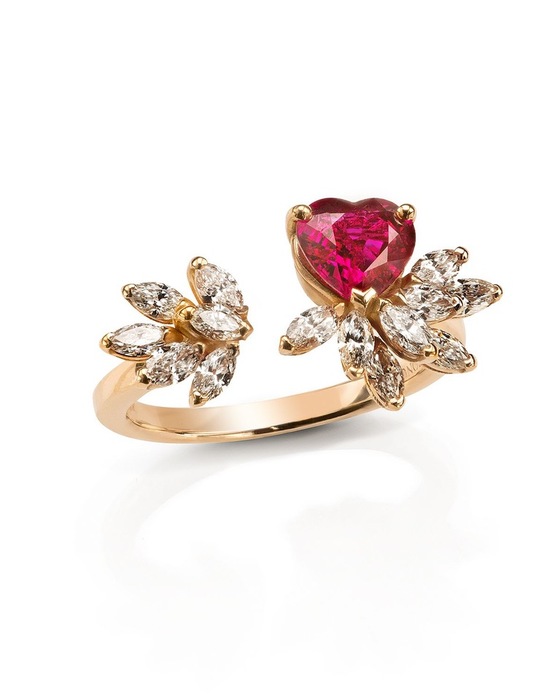 ANELLO DELICIOSA, ORO ROSA, DIAMANTI E RUBINI