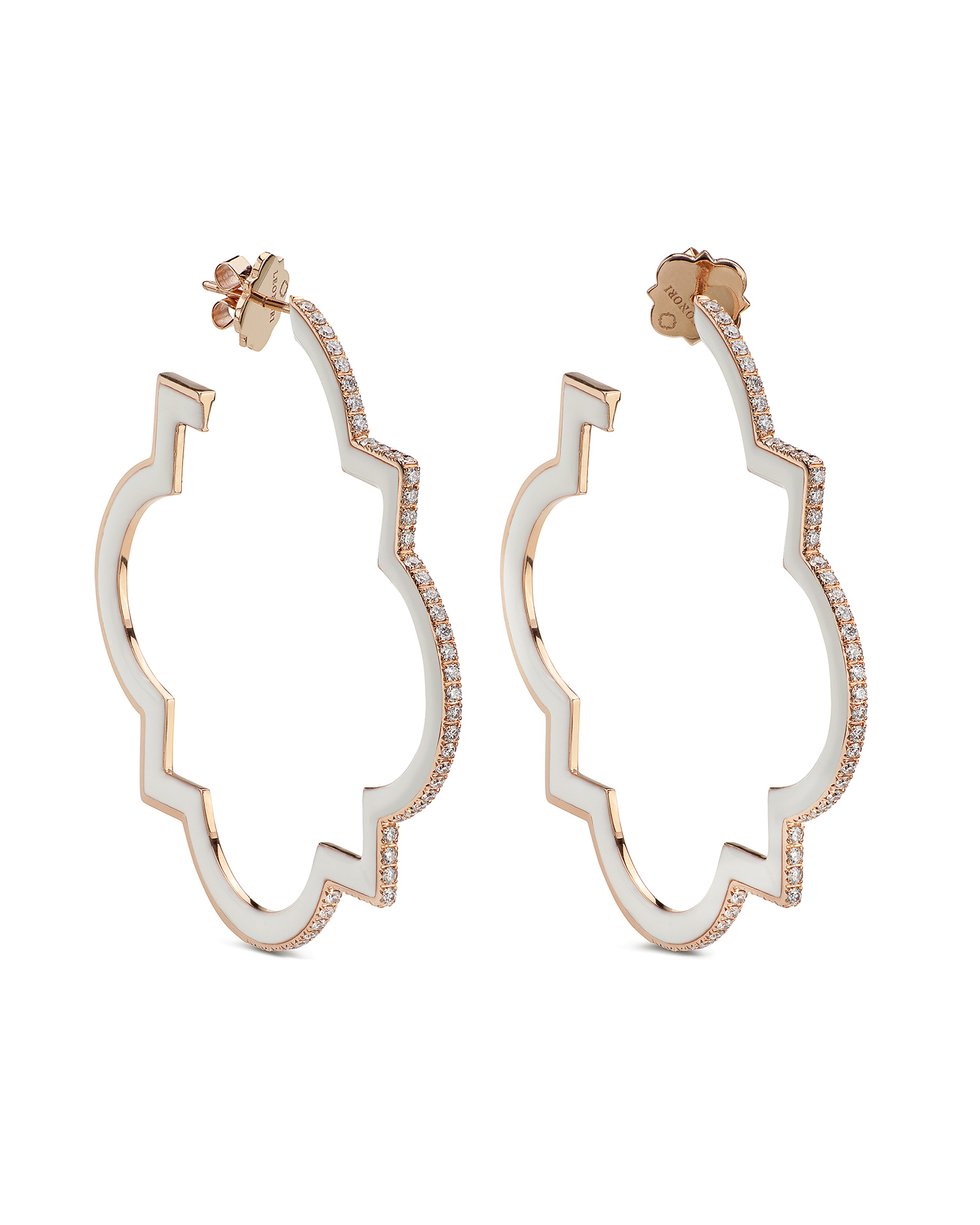 ORECCHINI ANIME,ORO ROSA, SMALTATURA BIANCA E DIAMANTI (Medium Size)