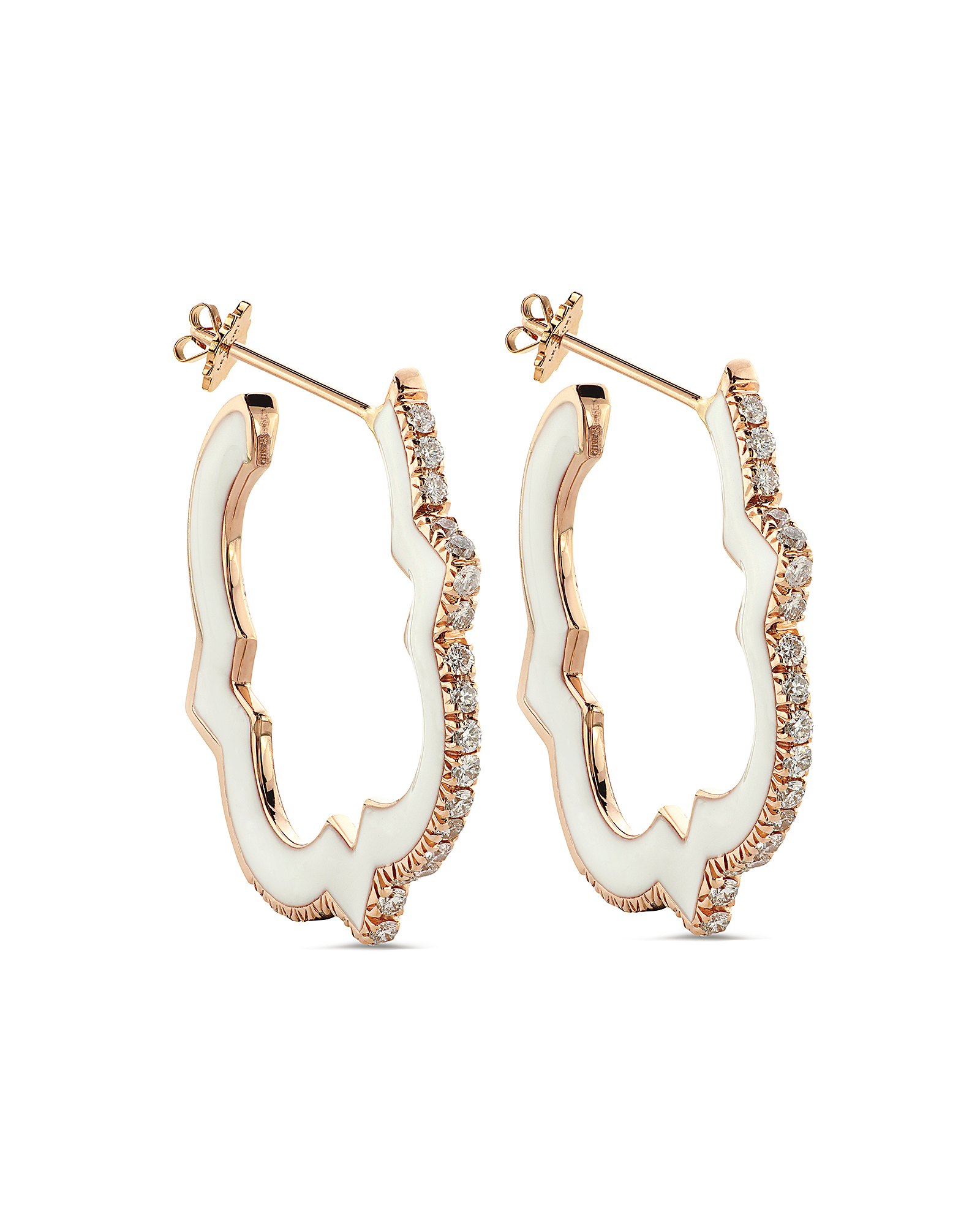 ORECCHINI ANIME, ORO ROSA, SMALTATURA BIANCA E DIAMANTI