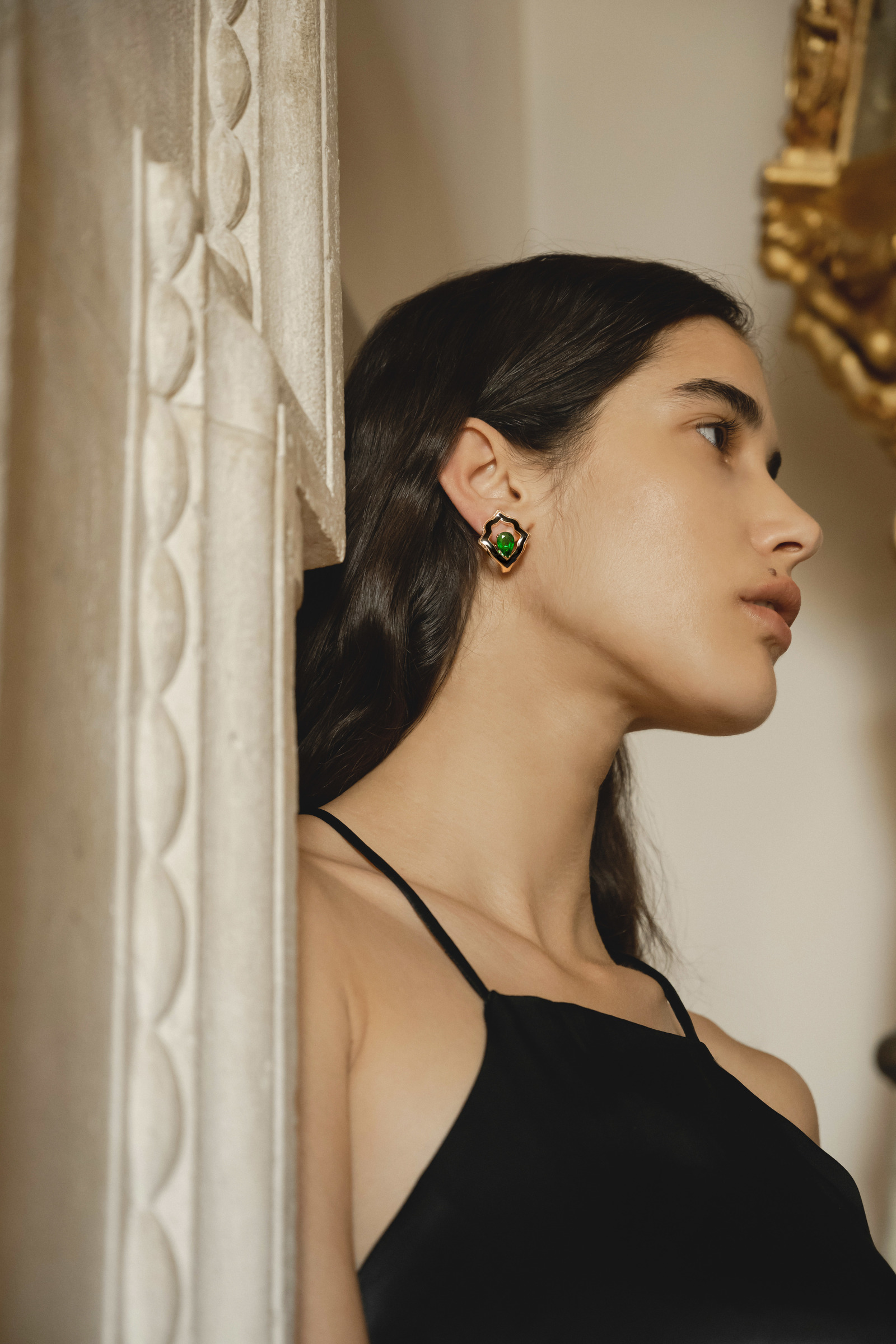 ORECCHINI ANIME ROCK, ORO ROSA, SMALTATURA NERA, DIAMANTI E SMERALDO