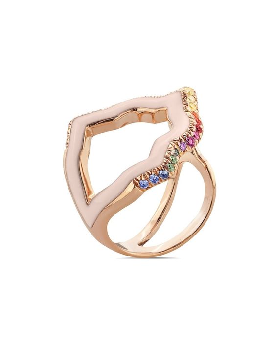 ANELLO ANIME ROCK, ORO ROSA, SMALTATURA ROSA CIPRIA E ZAFFIRI MULTICOLOR