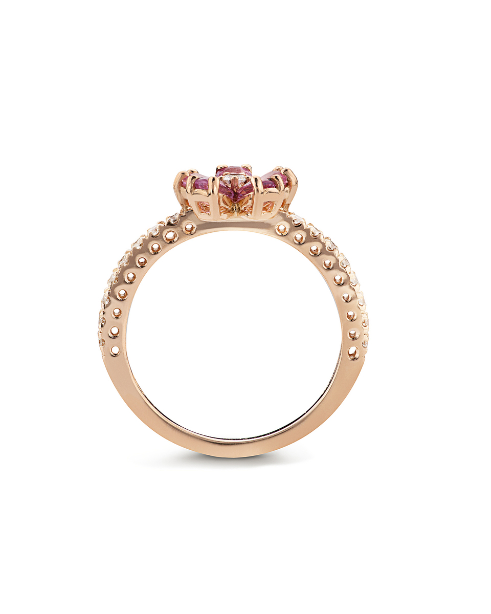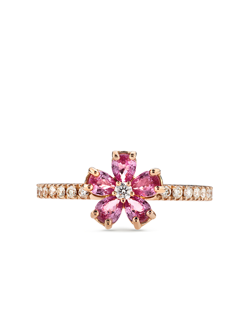 ANELLO FIORE DI CILIEGIO, ORO ROSA, DIAMANTI E ZAFFIRI ROSA