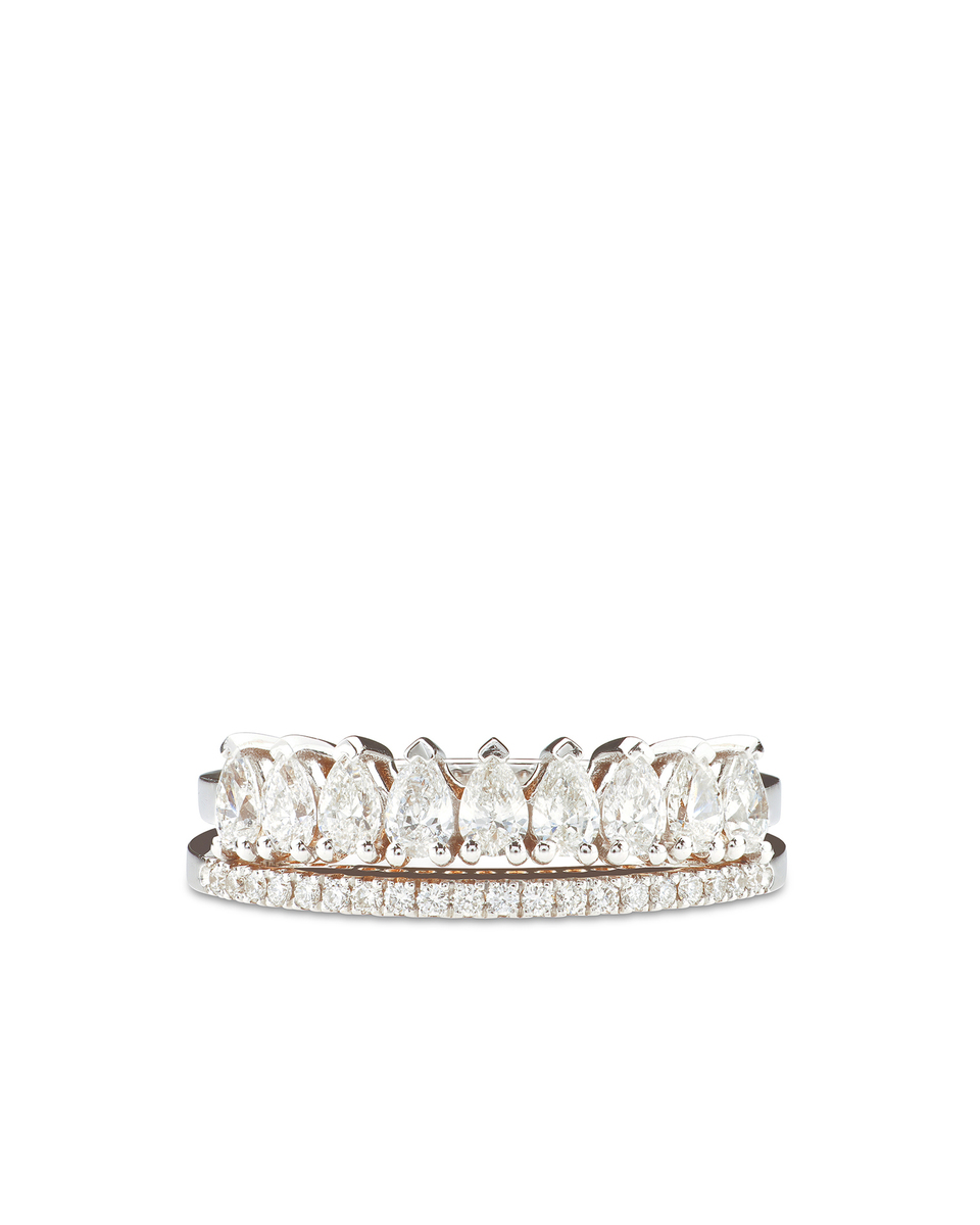 L'oro bianco combinato con i diamanti lascia che questo anello brilli ancora di più. Questo anello può essere combinato con gli altri anelli della stessa linea di colori diversi.