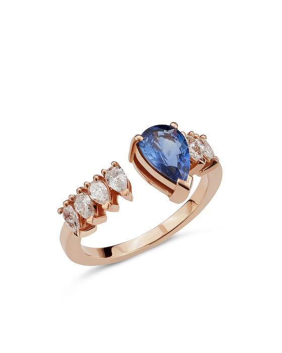 Grazie a questo anello si può avere uno stile unico e particolare. L'oro bianco viene impreziosito con diamanti e zaffiri blu che fanno brillare questo anello ancora di più.