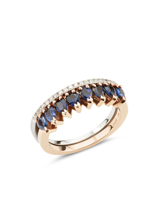 ANELLO ORO ROSA E BIANCO CON DIAMANTI E ZAFFIRI BLU