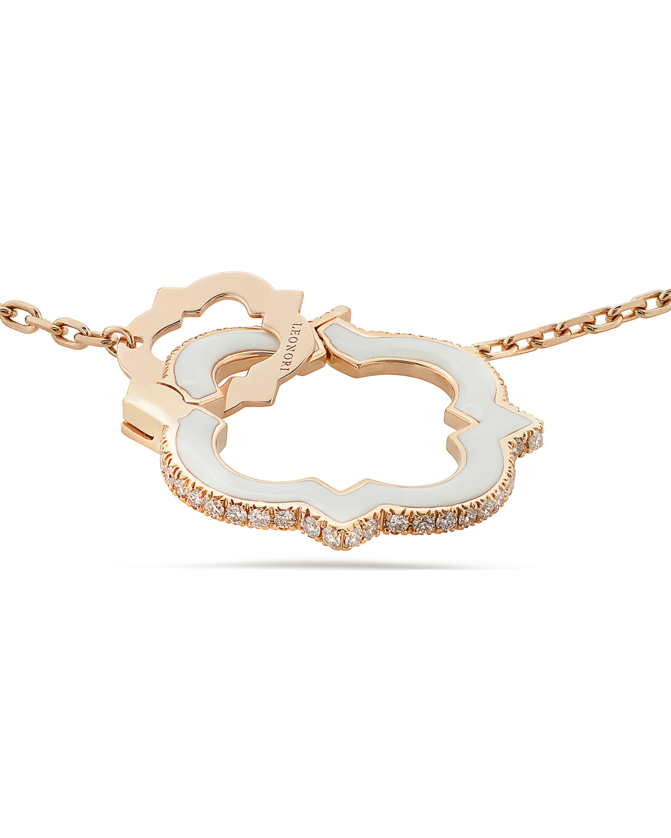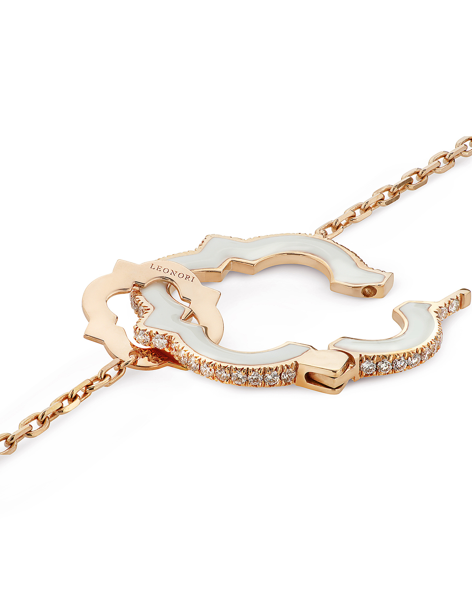 COLLANA ANIME CORTA, ORO ROSA, SMALTATURA BIANCA, MALACHITE E DIAMANTI