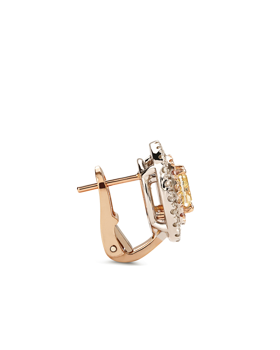 Orecchini con doppio giro di diamanti, in oro rosa e oro bianco impreziositi da un diamante fancy centrale.